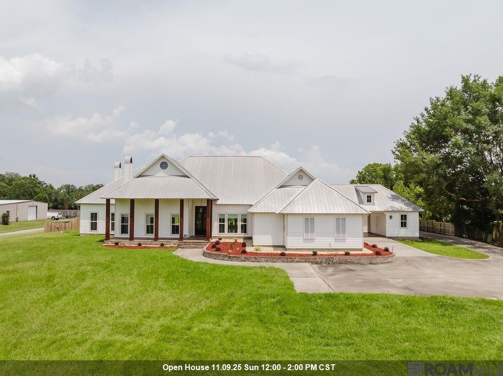 Custom Southern Estate on 3.26 Acres with Pool, Outdoor Kitchen & Room to Breathe! Welcome to your dream home! Nestled on a picturesque 3.26-acre rural tract in Denham Springs, this custom-built 6-bedroom, 5.5-bath home offers luxury, privacy, and space—all just minutes from Bass Pro Shops, Antique Village, and Juban Crossing. Step through the grand brick front porch and stunning wood-and-glass French doors into a warm and inviting open floor plan. The expansive living space features soaring ceilings, rich stained concrete floors, massive cedar beams, and a cozy wood-burning fireplace flanked by custom built-ins and oversized windows that flood the home with natural light. The heart of the home is a chef’s dream kitchen—decked out with cypress cabinetry, granite countertops, a Sub-Zero refrigerator, double ovens, gas cooktop, wine cooler, ice maker, and a massive center island with prep sink and seating. The adjoining keeping room with its own fireplace and sunny breakfast nook offer perfect spaces for everyday living or entertaining. The formal dining room impresses with soaring ceilings and designer lighting, while the split floor plan provides optimal privacy. The luxurious master suite features a sitting area with backyard views, a gas fireplace, and a spa-like ensuite bath with dual vanities, a deep soaking tub, custom tile shower, and a private laundry room with built-ins just off the bathroom. Each of the remaining five bedrooms is generously sized—four include private ensuite baths and one shares a spacious Jack-and-Jill setup, perfect for guests or multi-generational living. Outside is your own personal oasis. Relax under the covered patio complete with a full outdoor kitchen, granite counters, gas grill, and plantation shutters. Step onto the open patio and enjoy sunny days by the in-ground pool surrounded by lush, professionally landscaped grounds. A 3-car garage, secondary laundry room, and hidden tech closet round out the amenities.