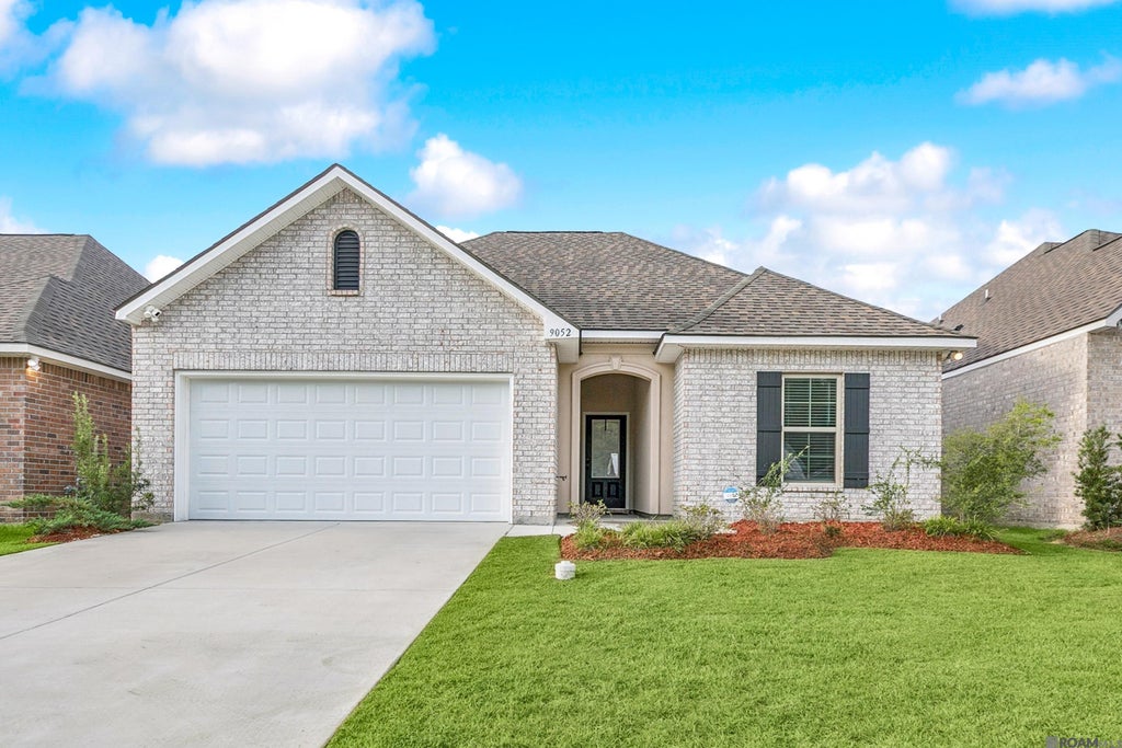 Welcome to 9052 Asoka Ave in the Willow Run subdivision of Baton Rouge. This location places you about 1 mile from Bluebonnet Boulevard, and the Perkins Rowe shopping district, and roughly 3.5 miles from the heart of the LSU campus. Everyday conveniences, dining, and recreation are all nearby, yet the neighborhood itself maintains a quiet, residential feel. The 2 year old home by DSLD offers a modern open-concept layout with a natural flow between the kitchen, dining, and living areas. The kitchen features white cabinetry, granite countertops, stainless-steel appliances, and a large island that anchors the space. The interior feels bright and balanced with neutral tones, tile and wood-style flooring in the main areas, and soft carpet in the bedrooms. The split-floor plan gives the primary suite privacy, complete with a double-vanity bath, separate shower, and soaking tub. Two additional bedrooms and a second full bath sit on the opposite side of the home. Out back, a covered patio opens to a fenced yard that is perfect for relaxing or entertaining. With clean lines, quality finishes, and energy-efficient construction, this home delivers comfort, simplicity, and style in a well-kept setting that continues to grow in value.